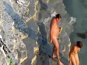 Swinging nudists spied on a beach