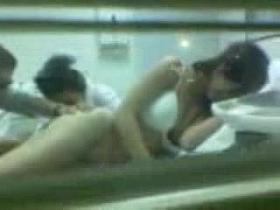 Russian girl copulated with an Arab guy in the public toilet