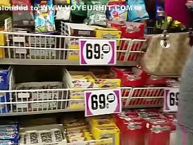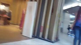 Blonde shopaholic in pink sweatpants gets her behind taped