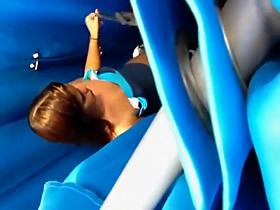 Curvy chick with a gorgeous trimmed pussy in the tanning bed
