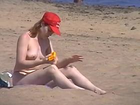Naked brunette woman nude beach candid video