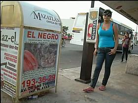 Busty brunette humiliated on the streets