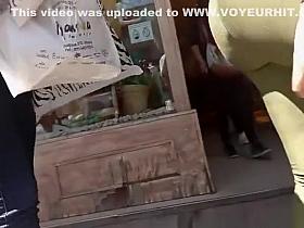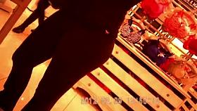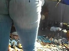 Brunette with a juicy ass in jeans followed by a candid cam voyeur