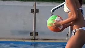 Voyeur spies a girl by the swimming pool