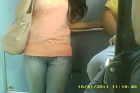 Hot voyeur camel toe spy in metro
