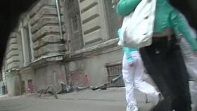 Candid street video of lusty camel toe in tight black pants