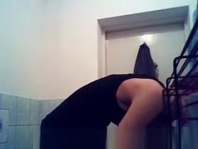 Small boobs girl caught in bathroom undressing