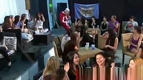 Lucky guy gets a soapy cfnm jerk from a group of sluts