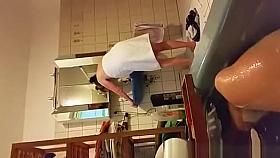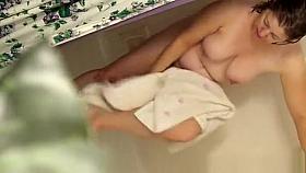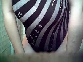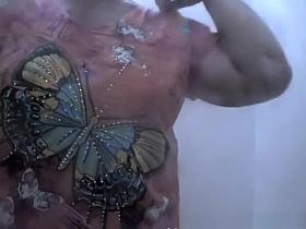My brother's fat wife takes a long and relaxing shower in the bathroom