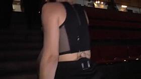 Cfnm girls plays with cock in public