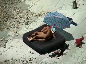 Topless girlfriend sucking his big cock at the beach