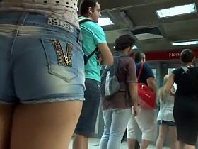 Sweet babe has most of her butt revealed on tape