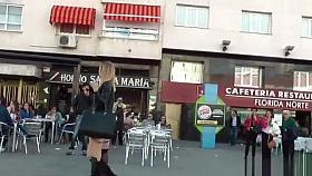 Sexy brunette disgraced around Madrid