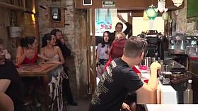 Disgraced Euro slaves fucked in bar