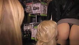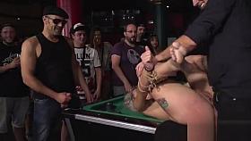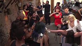 Busty blondes disgraced in crowded bar