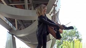 Blonde bound in latex outdoor disgraced