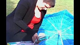 Kinky blonde gets all wet in free down blouse video