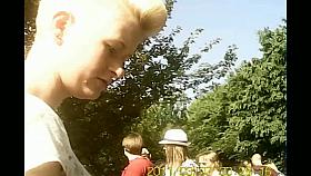 Blonde cutie shows her boobs in a down blouse video
