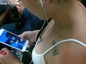 Hot girls with big breasts on a bus