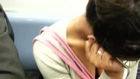 Horny voyeur filming hot Japanese women's cleavage