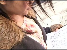 While an Asian peach it reading, someone is filming her tits