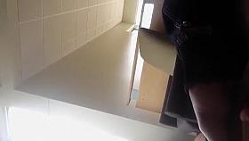 Girlfriend with fat buttocks getting penetrated in the bathroom