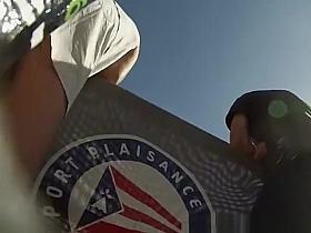 Busty girl filmed when shortly sucking cock in the pool cabin