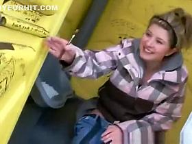 Wild Asian chick filmed in the club toilet when roughly masturbating