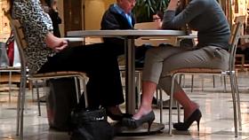 Candid Asian Nylon Shoeplay Feet Legs in Cafe