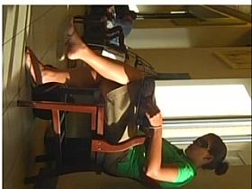 Candid US College Teen Shoeplay Feet Dangling in Nylons PT 3