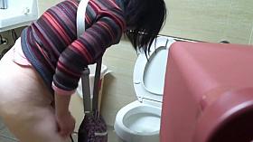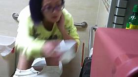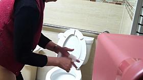 Sexy toilet voyeur video with a gray haired gmilf wearing sun glasses