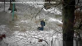 Desperate granny caught peeing in the public park