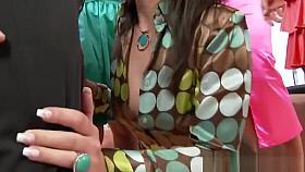 Lucky guy gets a soapy cfnm jerk from a group of sluts