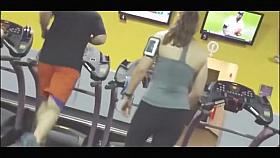 Spying a hot girl running on a treadmill