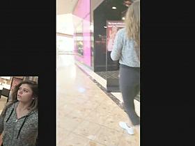 Big butt redhead in tight gray sports pants