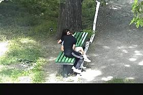 Mature nudist woman is being taped when playing with stranger's erected cock