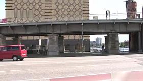 Leggy babe in heels and a dress filmed walking