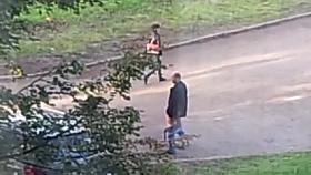 Three teens on the street followed by an upskirt cam