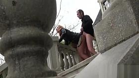 Young drunk lovers enjoy copulating in the dirty public place