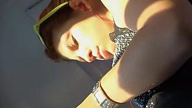 Kinky girl shows off in a moving car