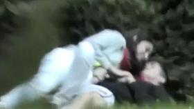Blonde girlfriend in the park had no panties at all!