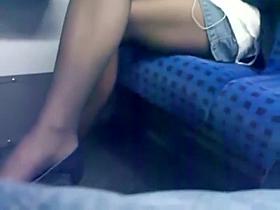 Sexy legs open wide in the bus