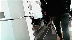 Upskirt of great ass at escalator
