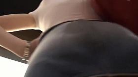 Big bubbly butt peeped under a hot skirt