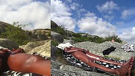 HOT WIFE CAUGHT MASTURBATING IN JUNGLE TUB THEN ORGASMS FOR CAMERA.