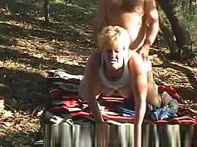 Hot blonde MILF has a threesome at the park