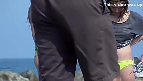 Geeky hottie seen on the beach
