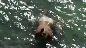Chubby Brazilian chick takes a quick swim in the local river