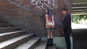 Cute petite slave fucking in public