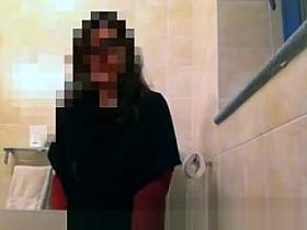 Woman spied in public toilet pissing